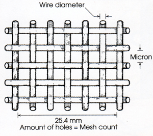The most commonly used weave. Each weft wire passes alternatively over and under each warp wire and vice versa. Warp and weft wire diameters are generally the same. Plain weave meshes are available with apertures from 10.7mm (2 mesh) to 0.05mm (325 mesh) |